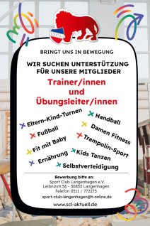 Auf der Seite "Sportangebote + Probetraining" kann jeder nachsehen, welche Sportangebote der SCL-Abteilungen, getrennt nach weiblichen und männlichen Sportlern sowie nach Altersklassen, vorhanden sind.